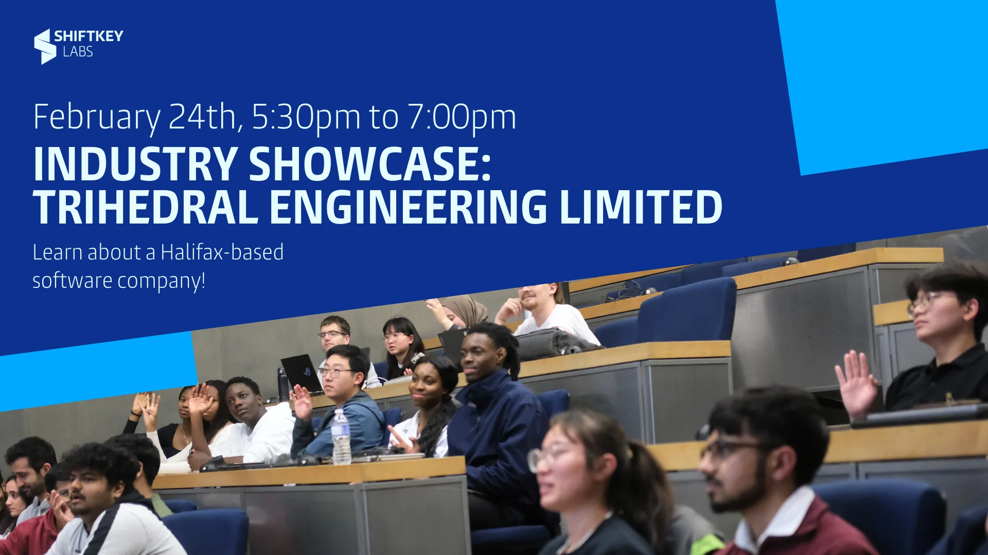 The Industry Showcase with Trihedral Engineering Limited Date: Tuesday February 24, 2026 Time: 5:30pm – 7:00pm Location: Room 430 Slonim Conference Room, Goldberg Computer Science Building Registration: Click here to register Benefits of attending: Learn about the organization’s operations Discover upcoming job and training opportunities Learn about a Halifax based company |