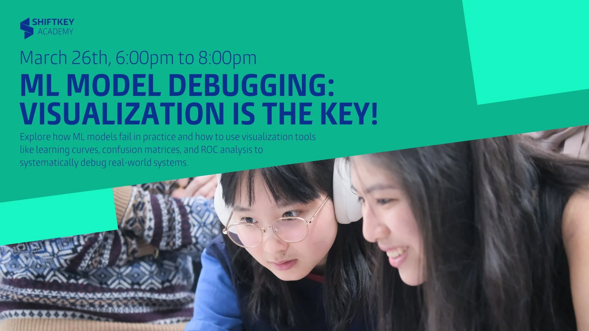 Want to understand why machine learning models fail — and how to fix them? This hands-on session dives into practical ML debugging using visualization-driven techniques. Learn how to diagnose hidden model failure patterns, interpret learning curves and confusion matrices, analyze ROC performance, and investigate error patterns before changing model architecture. You’ll build a stronger, more systematic approach to developing reliable ML systems. Led by Sheida Majouni, PhD Candidate in Computer Science at Dalhousie University and AI/ML Lead at DeepSense. March 26, 2026 6:00–8:00 PM Room 143 FREE Register here! https://bit.ly/shiftkey-events |