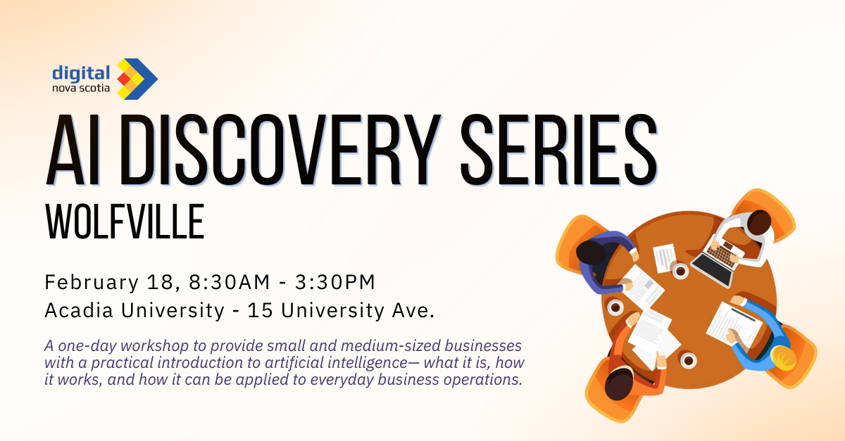 As technology continues to advance, small and medium-sized businesses (SMEs) are often the ones left behind—not due to lack of ambition, but lack of access, time, and practical support. This one-day, in-person workshop is designed to close that gap by giving Nova Scotia SMEs the knowledge, confidence, and tools they need to begin using AI in meaningful, cost-effective ways. Delivered by Digital Nova Scotia, in partnership with local ecosystem organizations and AI experts, this hands-on workshop provides a practical introduction to artificial intelligence—what it is, how it works, and how it can be applied directly to everyday business operations. Workshop topics: Make AI Work Better for You (Even If You’re Not Technical) Getting AI to do the Work for You AI Agents: Automate Your Knowledge Work This workshop includes complimentary breakfast and lunch